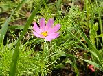 牧場の土手には コスモスが。 気の早い株が花を数輪咲かせていました。