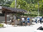 売店の道向こうには牧場が広がり、牛が草を食んでいました。