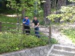 食後に 駐車場脇の七ツ岩吊橋を散策