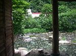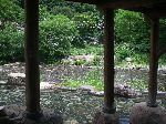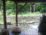 湯船の先は すぐ川。釣り糸を垂れている人が目の前を横切ります。