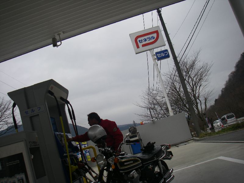 清滝で給油&休憩 コンビニ脇の温度計は0℃を表示していました |