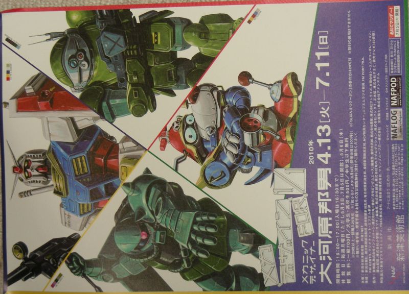 | 「スロットルアシスト」の具合を確認するため、霧雨の降る中 新潟まで高速道路を走行。 手のひらを乗せているだけで アクセルを維持できるので手首が非常に楽でした。 群馬は曇りや雨でしたが 新潟はずっと晴れていて ツーリング日和。 まずは新津美術館で開催されている「大河原邦男展」で 朽ち果てたダグラムを堪能。 |