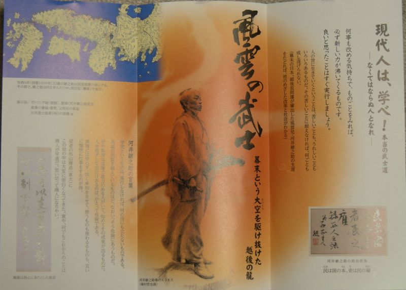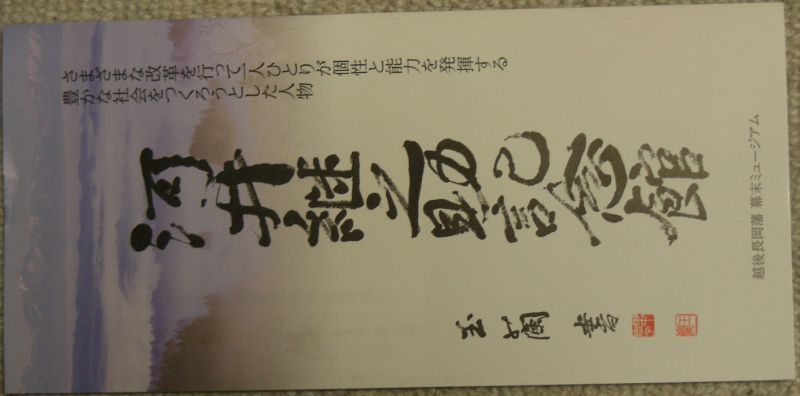 | 帰る足で 長岡の「河井継之助記念館」へ。 司馬遼太郎の「峠」のあとがきにもありましたが、一部では未だに悪評が高いらしく Openして3年だそうです。 2003年に訪問している只見の記念館は40年位前にOpenしているそうですが、長岡では記念館を作る事に対する反対も多かったようです。 継之助の生家跡に建てられており、当時の庭の一部が残されています。 |
