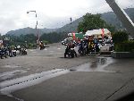 湯沢に出ると 路面がまだ濡れています