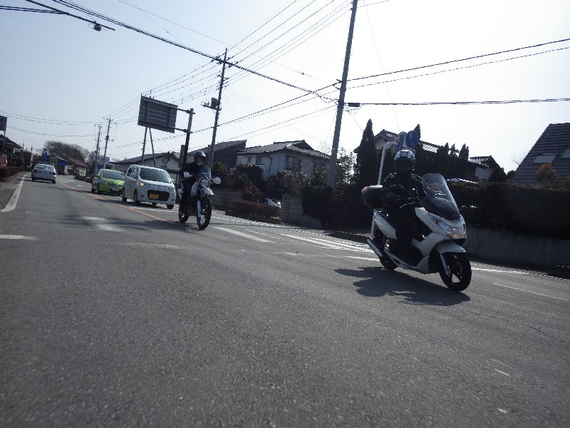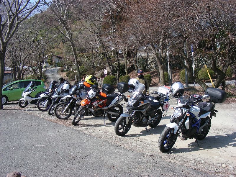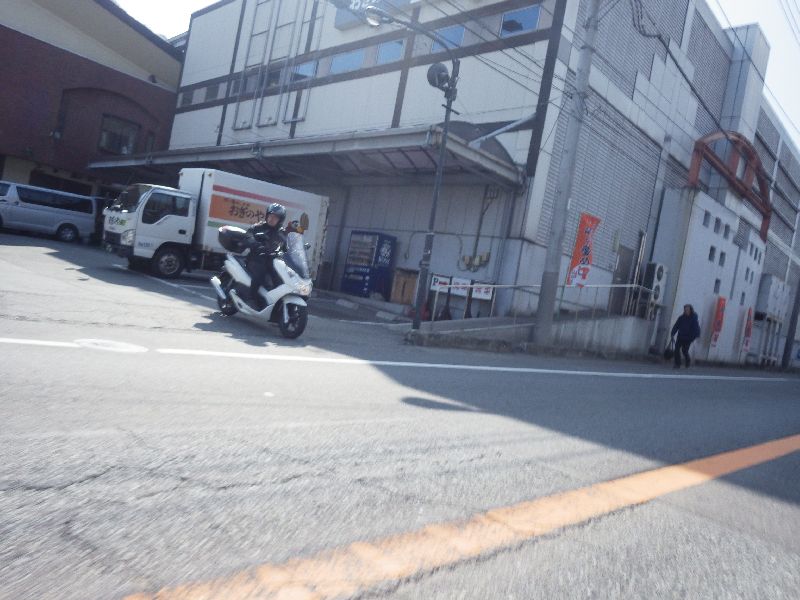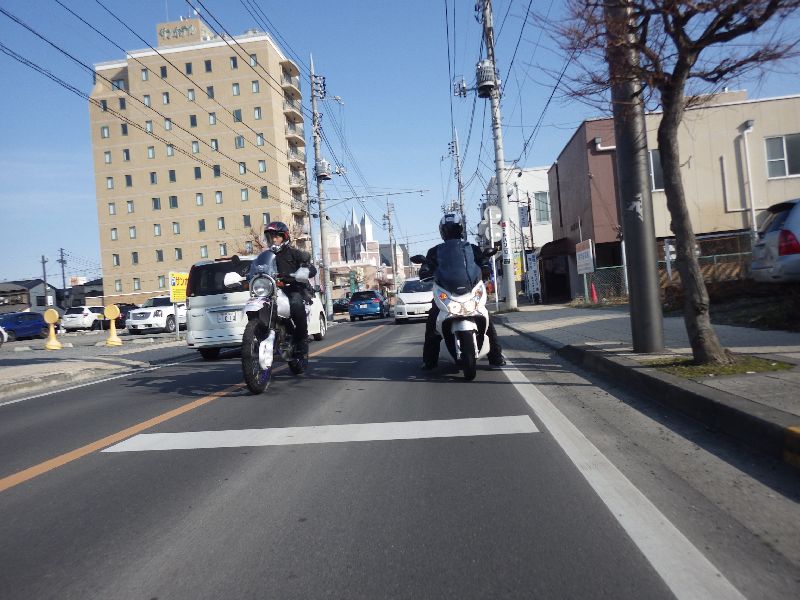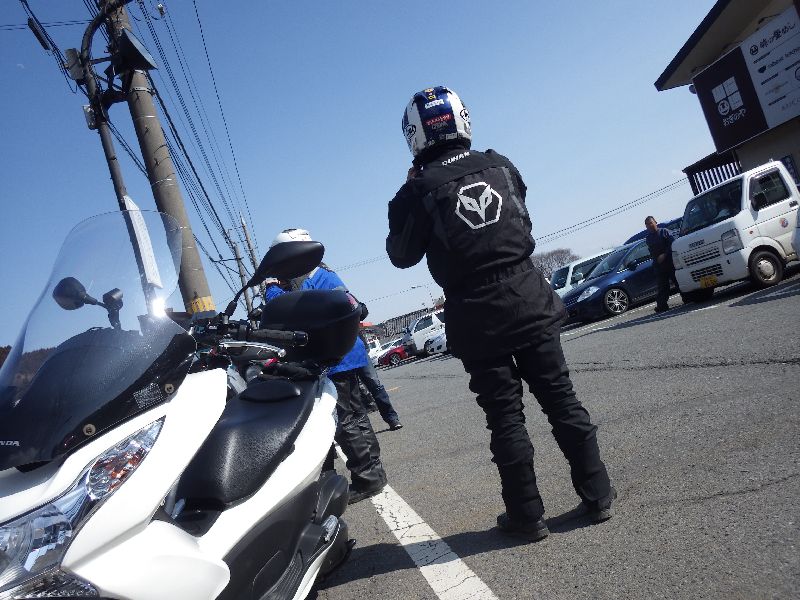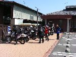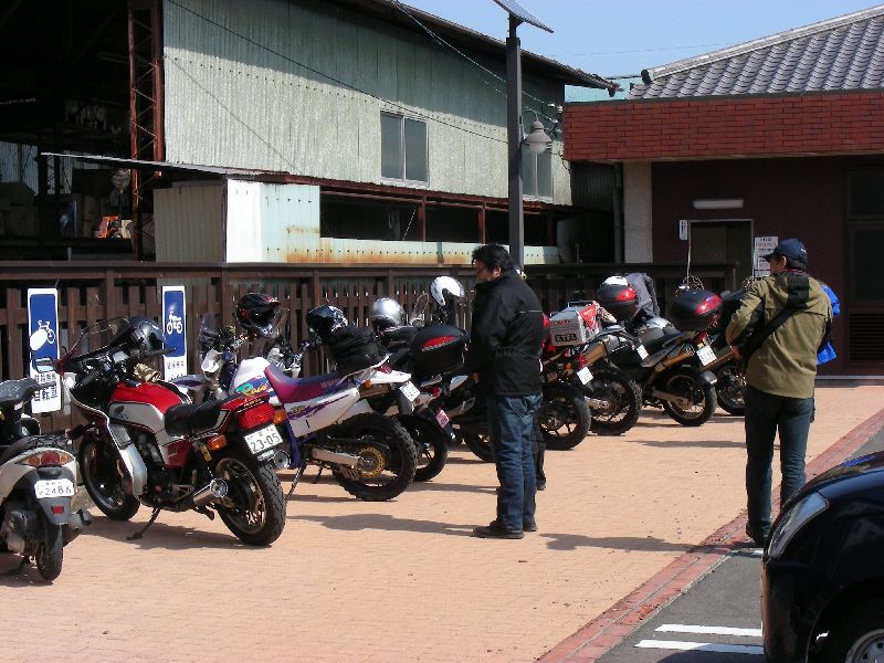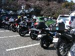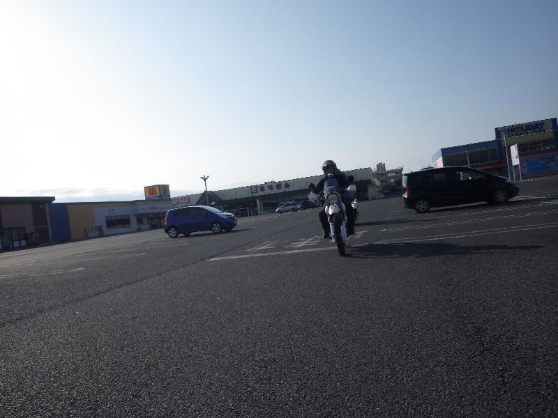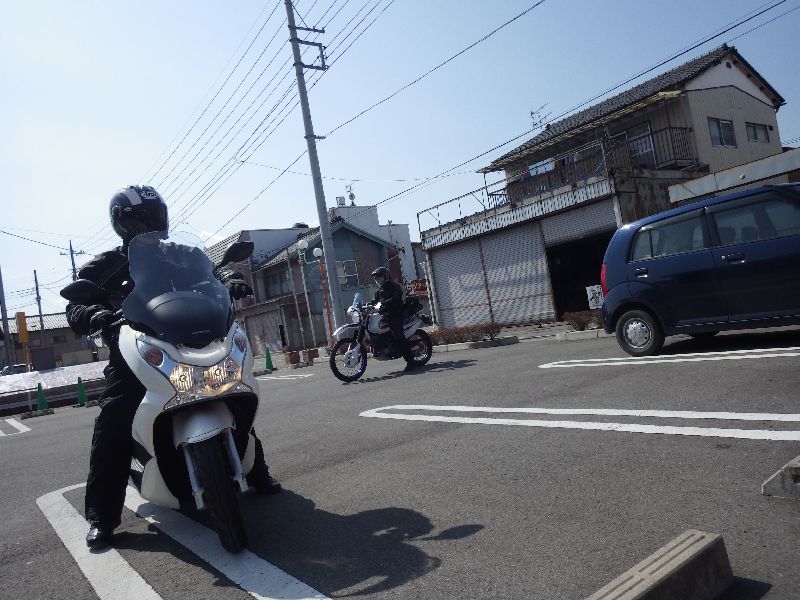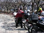 | 二輪駐車場にバイクを止め、 |