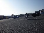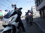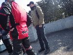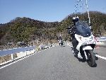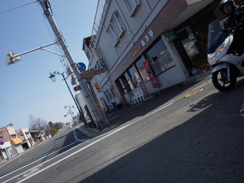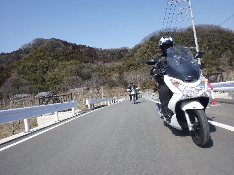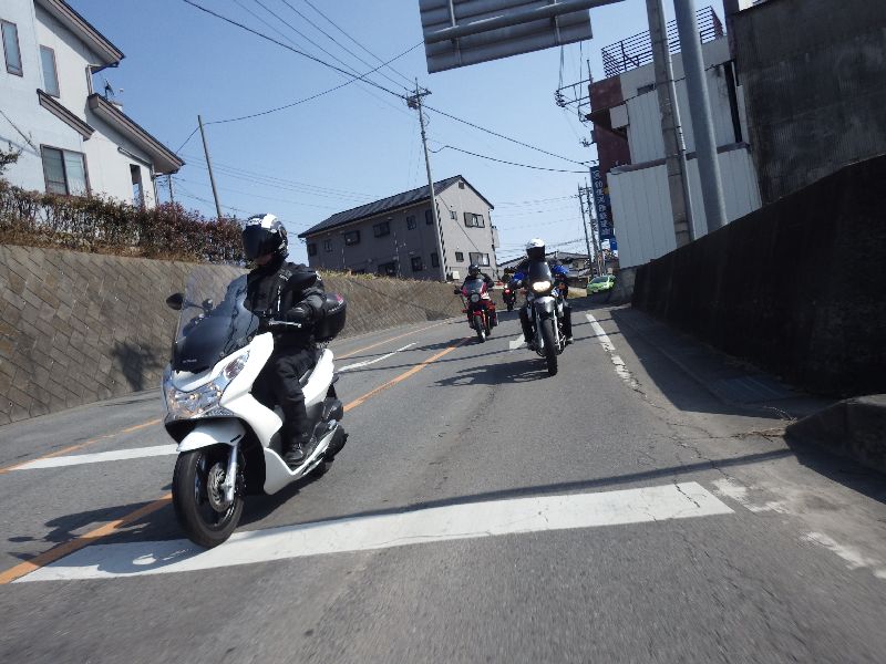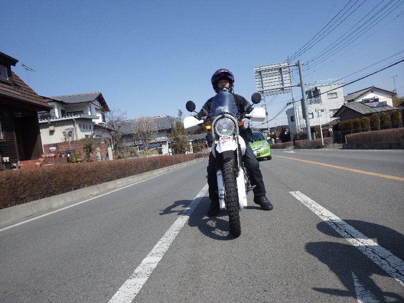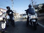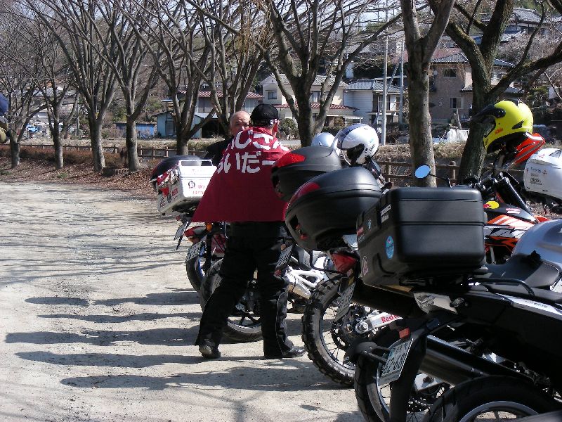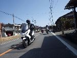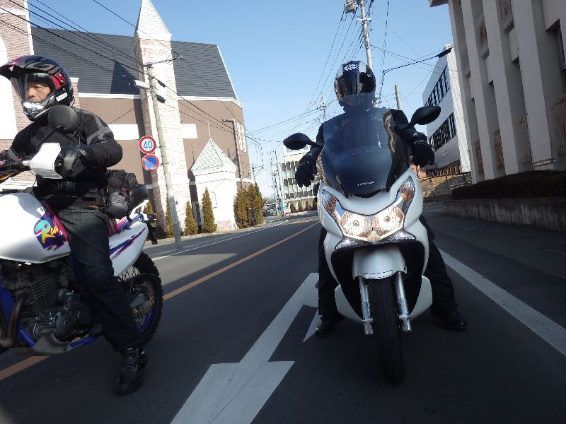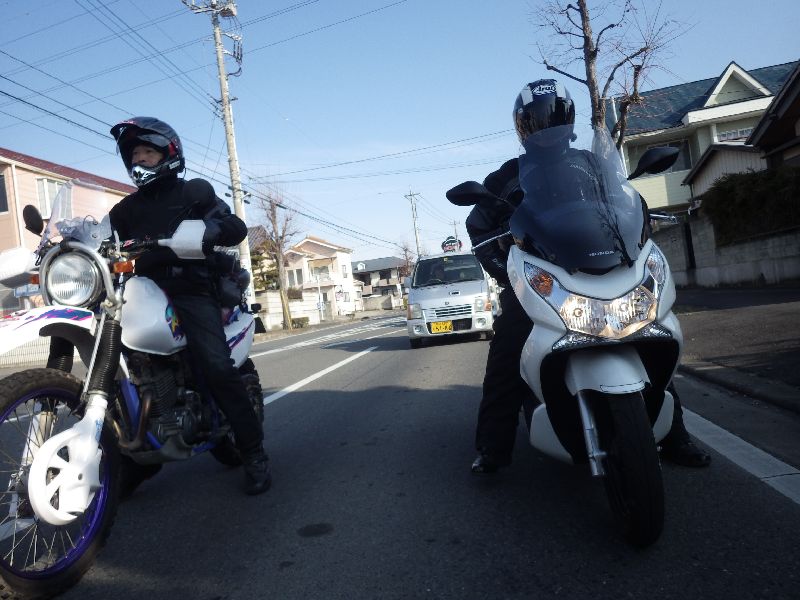 | 二輪駐車場にバイクを止め、 |