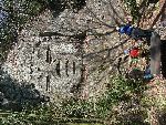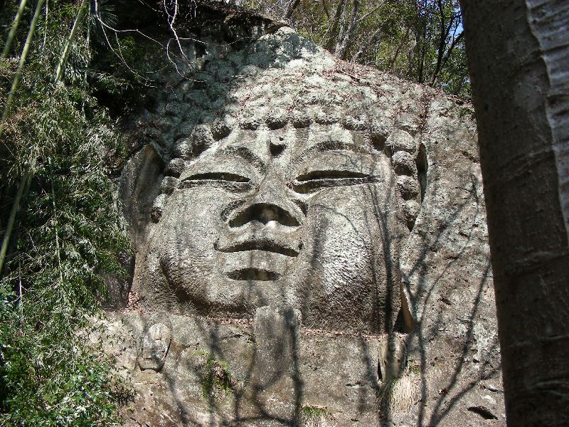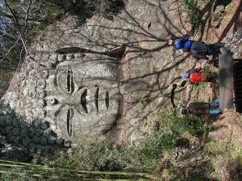 | 少々 山道を登って「磨崖仏」に到着 |