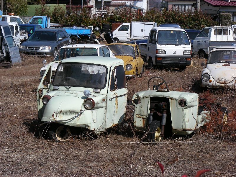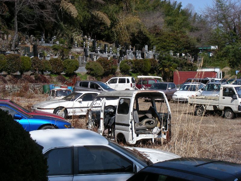 | お寺の隣の廃車置き場 こっちの方に興味を持つ人も多いのでは... |