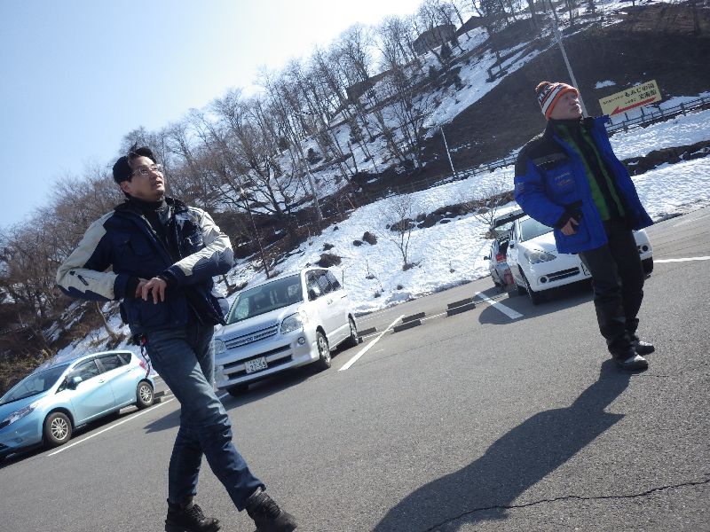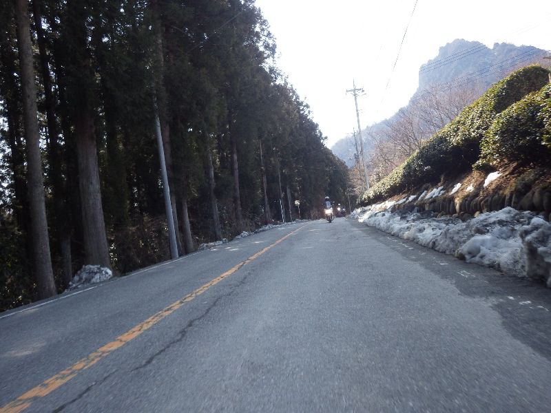 | 雪の残る峠を越え、 |